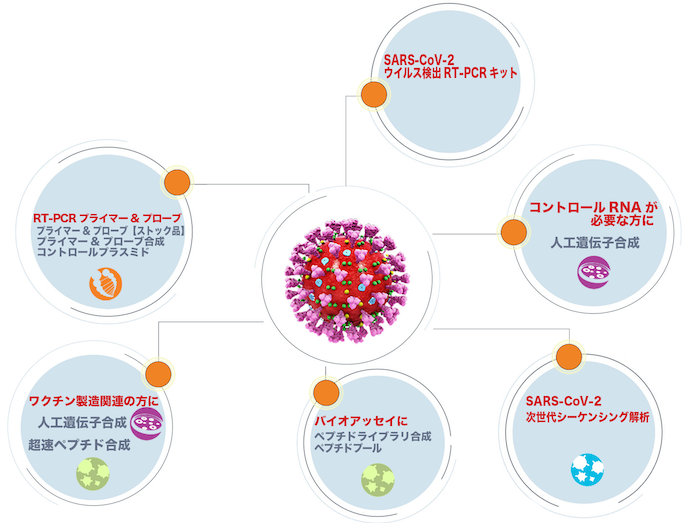 ※ SARS-CoV-2研究に絡む人工遺伝子合成につきましては、大臣確認が必要とのポジションペーパーが出ており、現時点では国内合成の対応が難しい状況にあります。