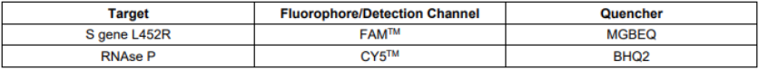 SARS-CoV-2 (重症急性呼吸器症候群コロナウイルス2) S 遺伝子における変異(L452R)の同定ならびに検出用の逆転写PCRアッセイ(RT-PCR)キットです。