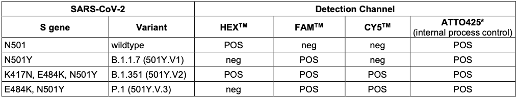SARS-CoV-2(重症急性呼吸器症候群コロナウイルス2)S遺伝子における変異(野生型および変異N501Y, E484K, K417N)の同定ならびに検出用の逆転写PCRアッセイ(RT-PCR)キットです。