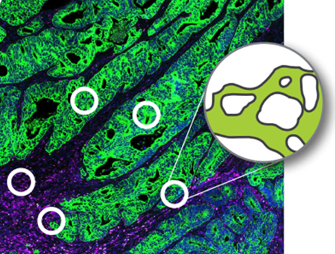 関心領域(ROI)における局所での遺伝子発現を目的に応じてプロファイリングできるので、ガンの微小環境における遺伝子発現解析などに最適なサービスです